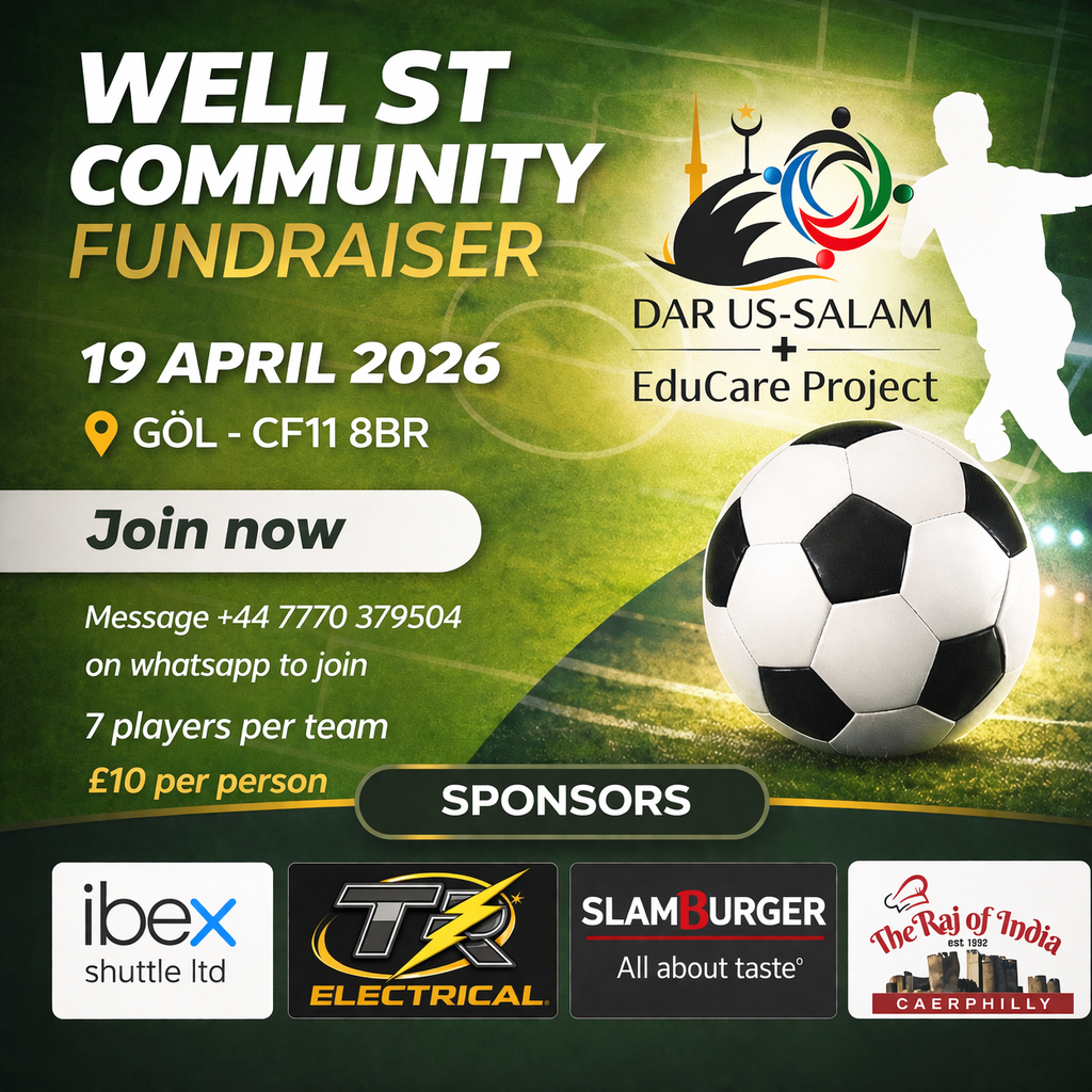Alhamdulillah, we have secured a property at 85A Wells Street in Cardiff which will inshaAllah become a community centre serving the local community. This is a joint initiative between Educare Project, Crisis Aid and Dar Us-Salam, with the aim of creating a space for education, youth activities, community services and charitable work.